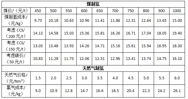 表4 煤制氫和天然氣制氫成本分析