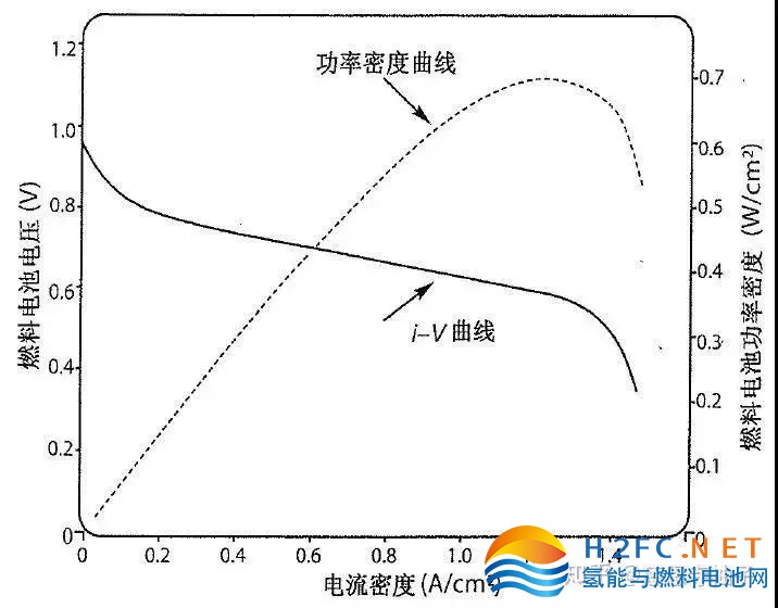 這三種損失均可以通過電壓降的形式表示,實際燃料電池的工作電壓為:燃料電池的三種損失都與電流密度(電流÷反應面積)相關,在低電流密度階段活化極化是主要影響因素,中電流密度時,歐姆極化占主流,此時燃料電池的i-V曲線基本成一直線,而高電流密度時,主要的影響因素又變成了濃差極化。可以看到,低電流密度和高電流密度時,輸出電壓變化較大,且不線性,因此正常使用時,應盡量使用中間線性段。