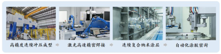 金屬雙極板產(chǎn)品的生產(chǎn)工藝流程主要包括沖壓階段、焊接階段、鍍膜階段和密封階段,主要流程如下: