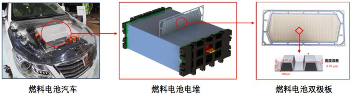 雙極板成本占電堆的20——40%左右。雙極板在燃料電池電堆中主要作用為分配反應氣體、導電導熱及支撐膜電極,是燃料電池的骨架與基礎。