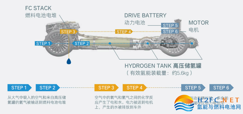 2023年6月,廣汽豐田官網上新了豐田最新款氫燃料電池車Mirai 。新款Mirai配備高壓儲氫罐,加滿氫氣僅需3分鐘,續航里程可達781km。Mirai配備電機最大功率為134kW,峰值扭矩300N·m,百公里加速時間為9.2秒,最高車速可達175公里/時。