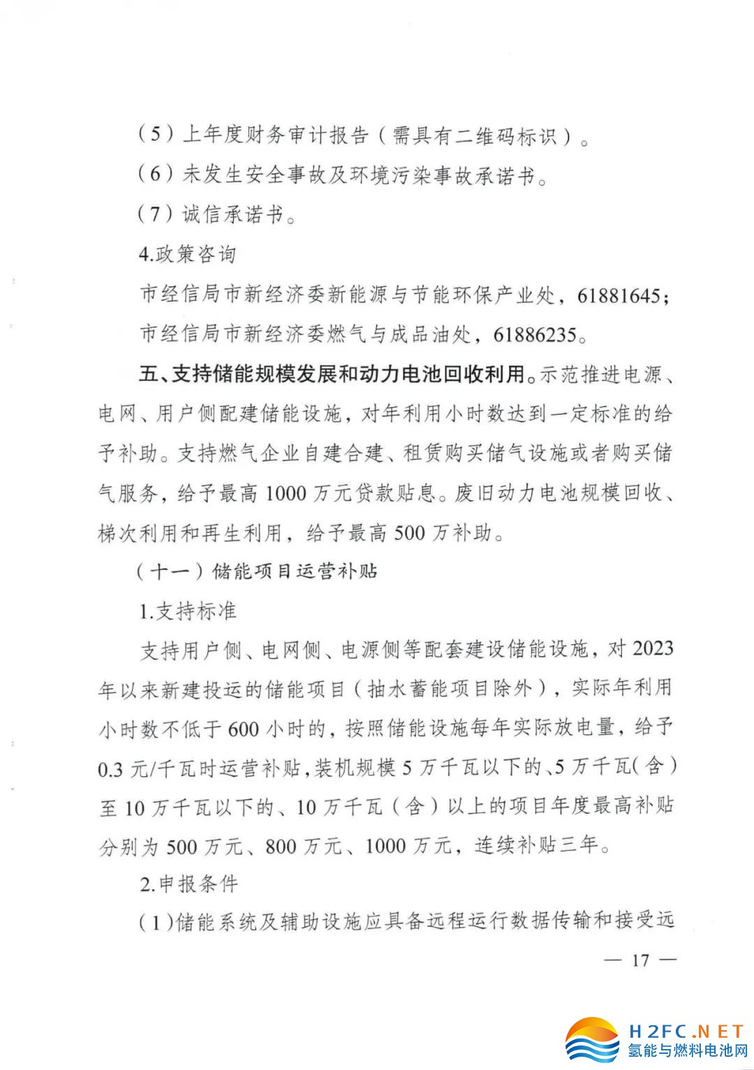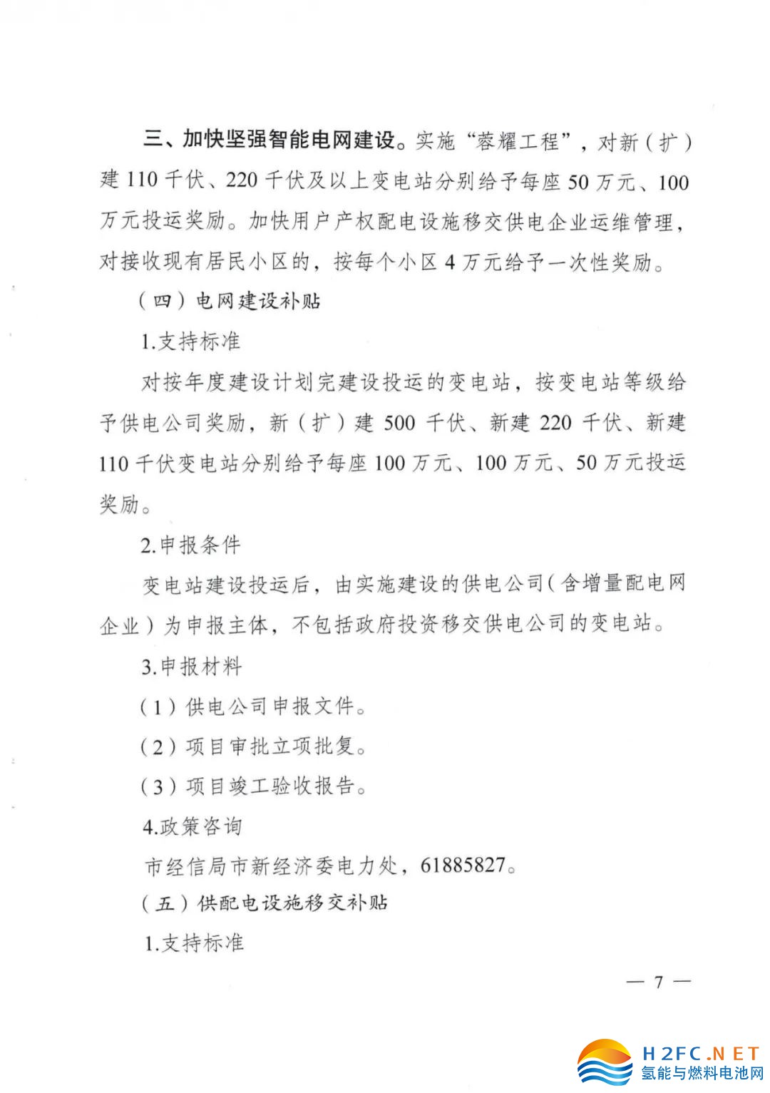 在氫能方面,《實施細則》第四條指出:支持可再生能源和氫能發展利用。支持分布式光伏試點示范,按裝機容量給予最高 300 萬元、按發電量給予最高1000萬元補助。對綠電制氫項目市區兩級聯動給予0.15-0.2元/千瓦時的電費支持。鼓勵氫能多領域應用示范,對加氫站建設運營,給予最高1500 萬元補助。