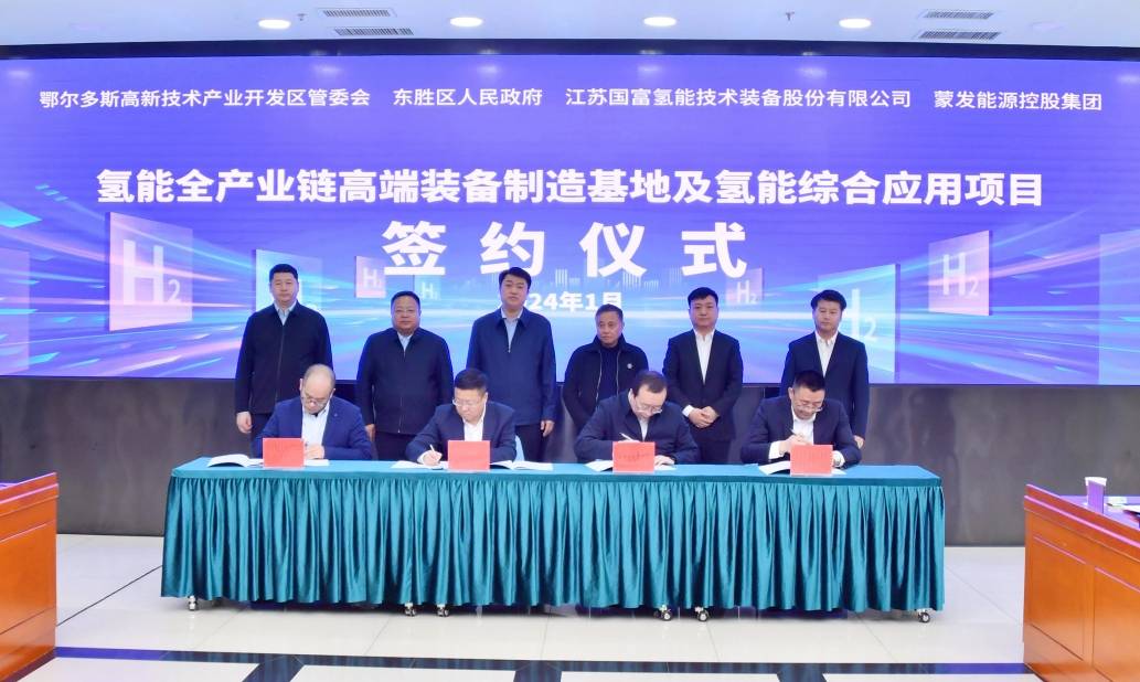 1月29日,鄂爾多斯高新技術產(chǎn)業(yè)開發(fā)區(qū)管委會、東勝區(qū)人民政府與江蘇國富氫能技術裝備股份有限公司、蒙發(fā)能源控股集團成功簽約氫能全產(chǎn)業(yè)鏈高端裝備制造基地及氫能綜合應用項目。