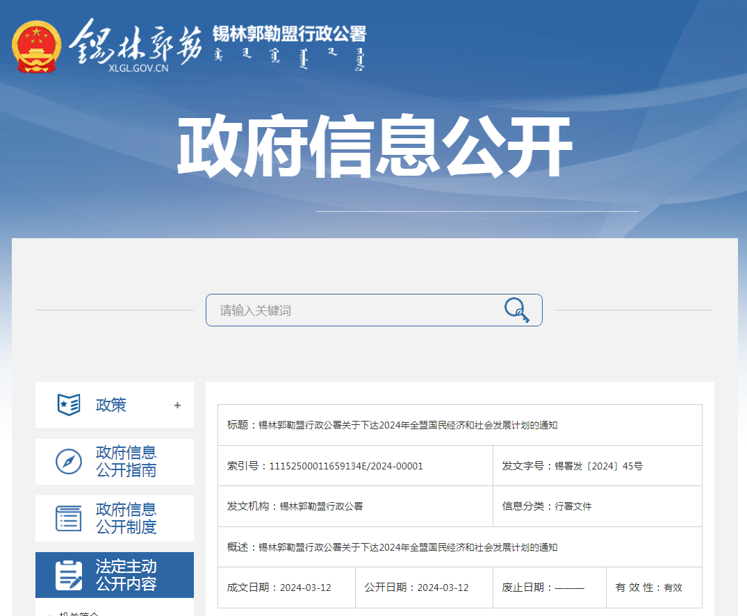 2024年3月12日,內(nèi)蒙古錫林郭勒盟行政公署發(fā)布關(guān)于下達2024年全盟國民經(jīng)濟和社會發(fā)展計劃的通知。