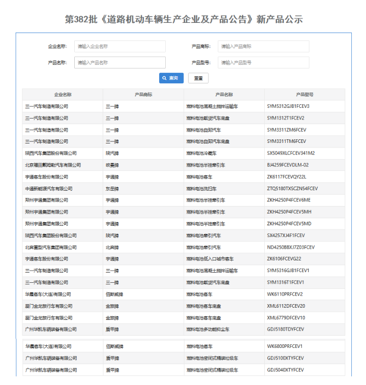 2.申報《道路機動車輛生產企業及產品公告》(第382批)的車輛新產品公示清單
