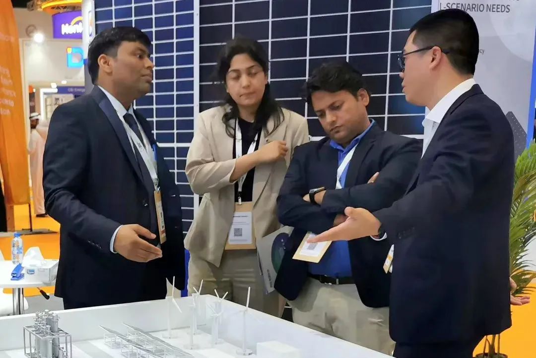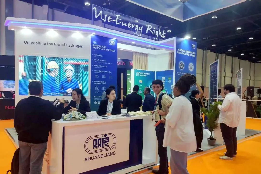 雙良高效光伏組件優選自產硅片,產品具有高功率、高發電性能、高可靠性、低衰減的特點,目前已在“沙戈荒”地區的國家大型集中式光伏電站和各類分布式光伏電站中廣泛應用,并受到歐美、東南亞、非洲等市場客戶的廣泛青睞。此次雙良展位展示了雙良最新一代綠電制氫系統與高效能N型Topcon光伏組件產品,“光伏+氫能”清潔能源解決方案吸引了現場眾多觀眾駐足問詢。