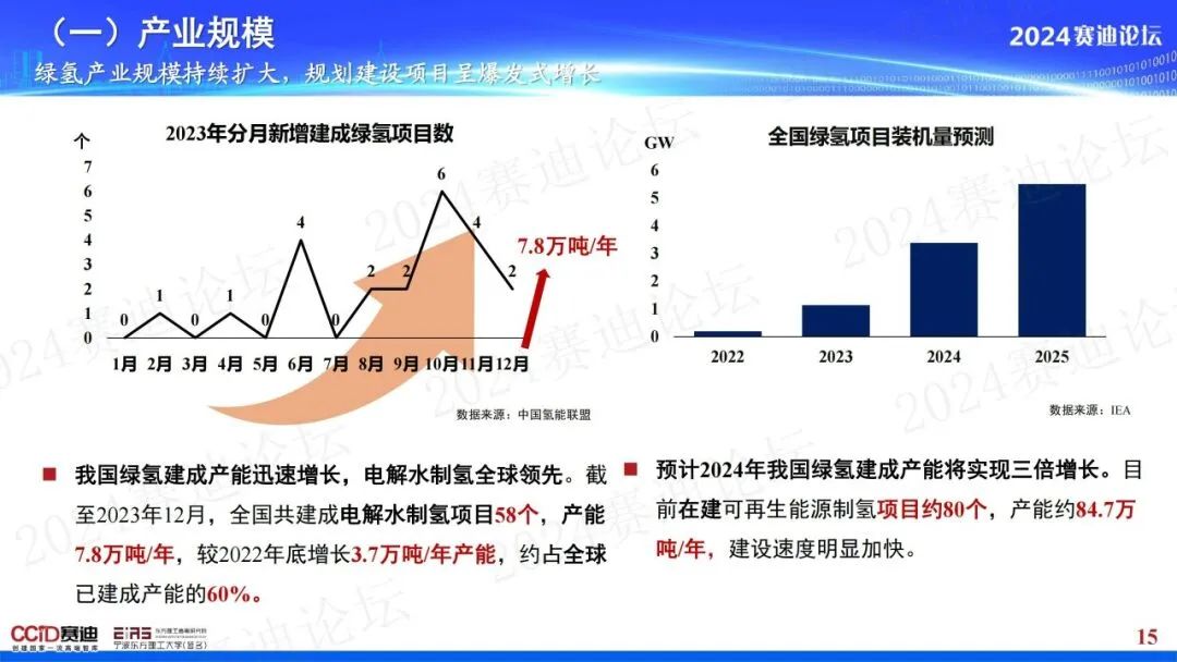 報(bào)告預(yù)計(jì),到2025年,中國(guó)的氫燃料電池汽車保有量將超過10萬輛,加氫站保有量將超過1千座,綠氫產(chǎn)能將接近100萬噸,氫能產(chǎn)業(yè)規(guī)模將達(dá)到萬億元。值得一提的是,預(yù)計(jì)2024年中國(guó)的綠氫建成產(chǎn)能將實(shí)現(xiàn)三倍增長(zhǎng),目前在建的可再生能源制氫項(xiàng)目約有80個(gè),產(chǎn)能約84.7萬噸/年,建設(shè)速度明顯加快。