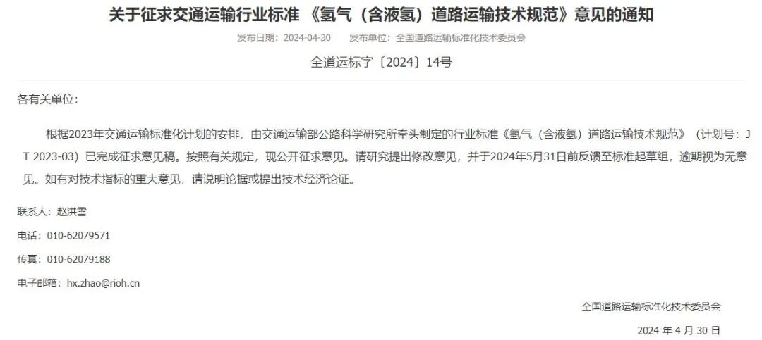 2023年10月,交通運(yùn)輸部公路科學(xué)研究院汽車(chē)運(yùn)輸研究中心在北京大興國(guó)際氫能示范區(qū)組織召開(kāi)了交通運(yùn)輸行業(yè)標(biāo)準(zhǔn)《氫氣(含液氫)道路運(yùn)輸技術(shù)規(guī)范》研討會(huì),行業(yè)標(biāo)準(zhǔn)啟動(dòng)制定。