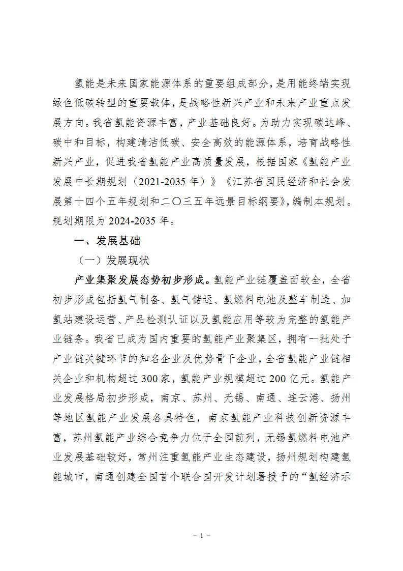 日前,江蘇省發展改革委發布關于印發《江蘇省氫能產業發展中長期規劃(2024-2035年)》的通知。