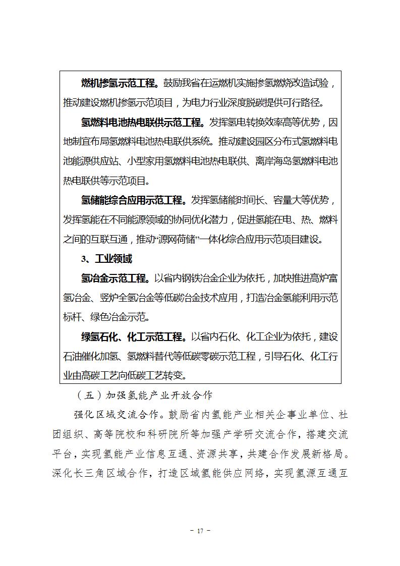 2、在氫能基礎設施完善工程上,江蘇省可再生能源制氫要結合沿海區域千萬千瓦級大型海上風電基地項目規劃布局,與海上能源島項目開發建設融合,推動建設海上風電制氫示范項目,攻關海上風電制、儲、輸氫關鍵技術,探索建立海上風電制氫配套政策。在具備資源條件的地區,開展光伏發電制氫、生物質制氫等試點示范項目建設。