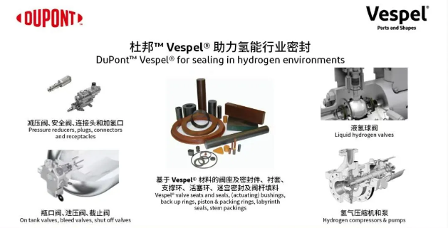Vespel?零件與型材憑借其獨有的綜合物理機械性能、高耐摩性和低氫滲透性,能夠滿足氫能應用中最苛刻的密封要求。Vespel?具有低壓縮模量且在高溫和低溫下均能保持穩(wěn)定的特點,耐蠕變性能優(yōu)異,在各種典型氫環(huán)境下都能實現(xiàn)優(yōu)異的動態(tài)密封性。Vespel?零件與型材受氫能客戶青睞,被用于制作嚴苛條件下使用的各種閥座和密封件、執(zhí)行器襯套、支撐環(huán)、活塞環(huán)和填料環(huán)、迷宮式密封件和閥桿填料。