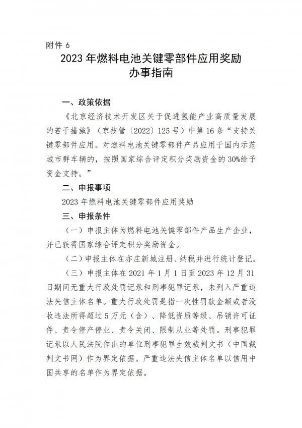 6、2023年燃料電池關鍵零部件應用獎勵辦事指南