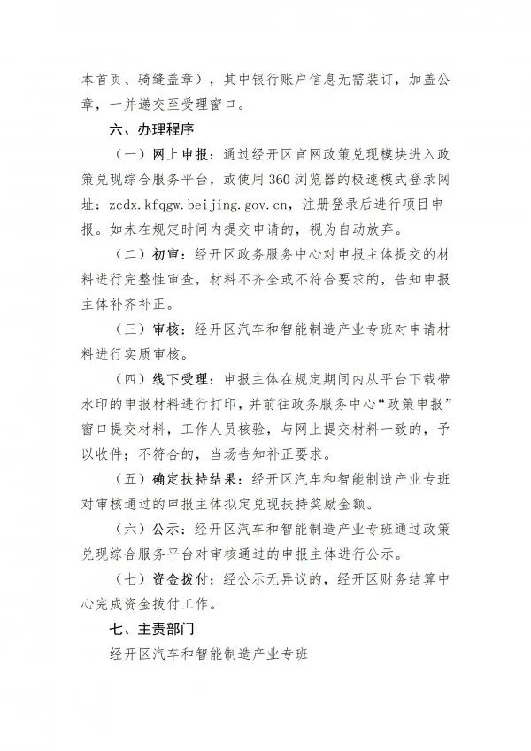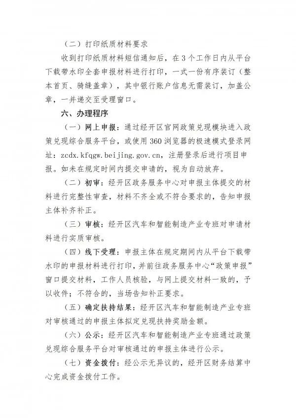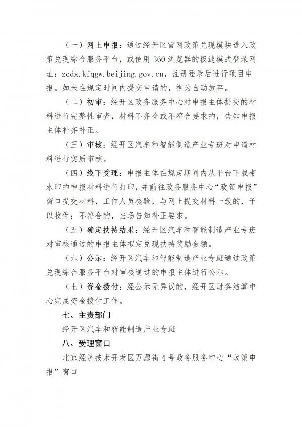自2024年6月6日至2023年6月20日期間通過經開區官網政策兌現模塊進入政策兌現綜合服務平臺,或使用360瀏覽器的極速模式登錄網址:zcdx.kfqgw.beijing.gov.cn,注冊登錄后進行項目申報。如未在規定時間內提交申請的,視為自動放棄。