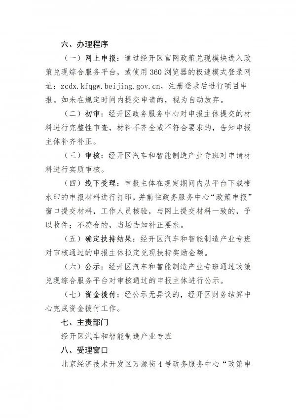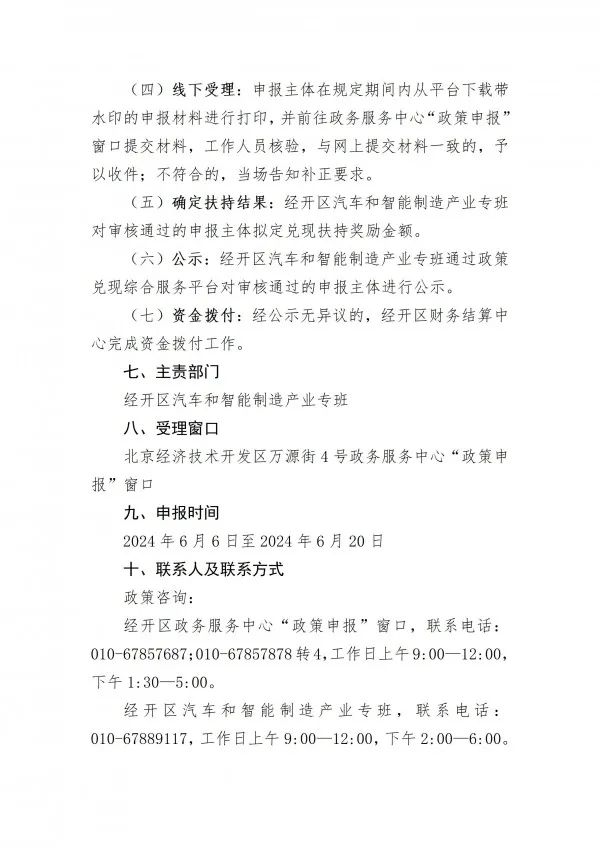 經開區汽車和智能制造產業專班,聯系電話:010-67889117,工作日上午9:00—12:00,下午2:00—6:00。