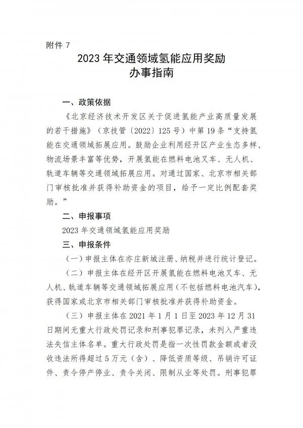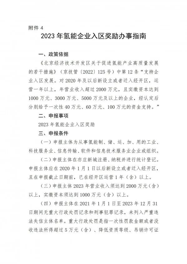 2024年6月4日,北京經濟技術開發區發布《關于開展2023年氫能產業政策相關事項申報的通知》。