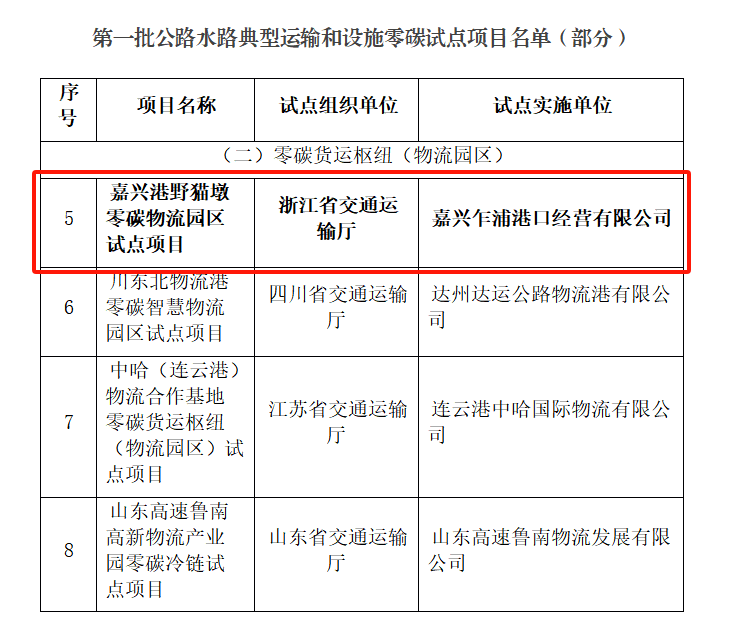 近日,交通運輸部綜合規劃司公示第一批公路水路典型運輸和設施零碳試點項目名單,由浙江省交通運輸廳組織、嘉興乍浦港口經營有限公司實施的嘉興港野貓墩零碳物流園區試點項目成功入選。