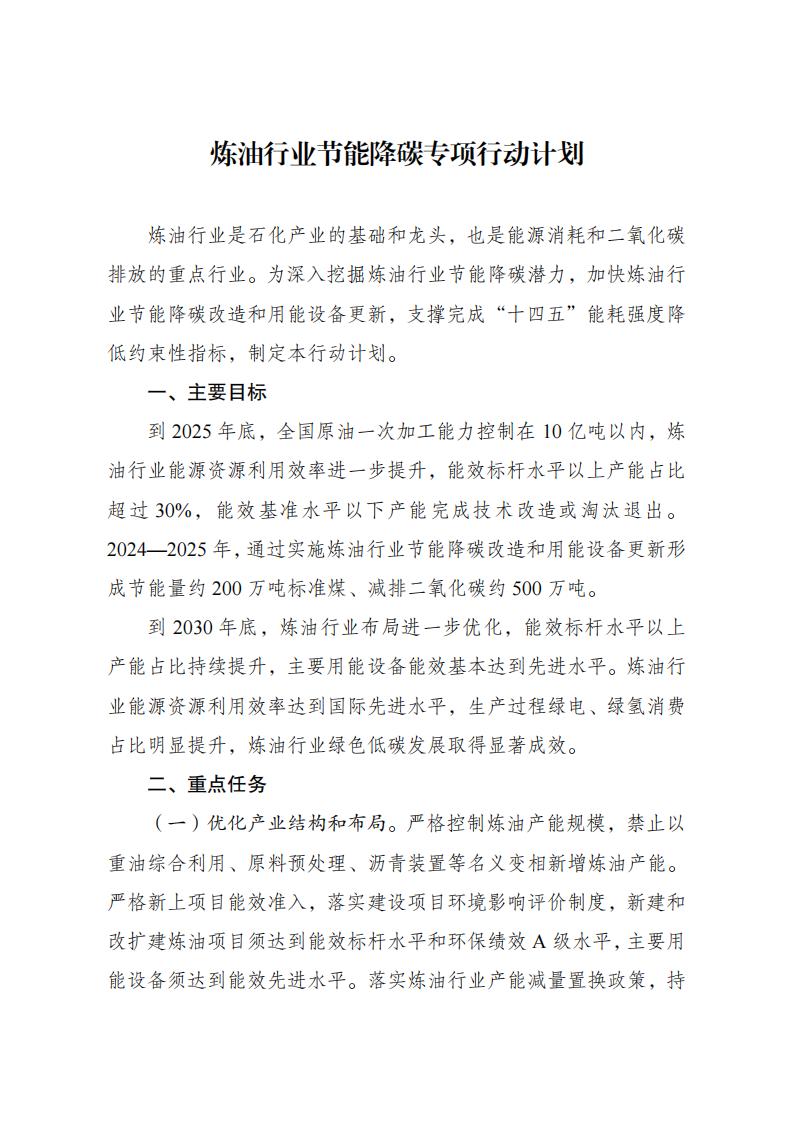 2024年6月7日,國家發(fā)展改革委等部門印發(fā)了《煉油行業(yè)節(jié)能降碳專項行動計劃》的通知。