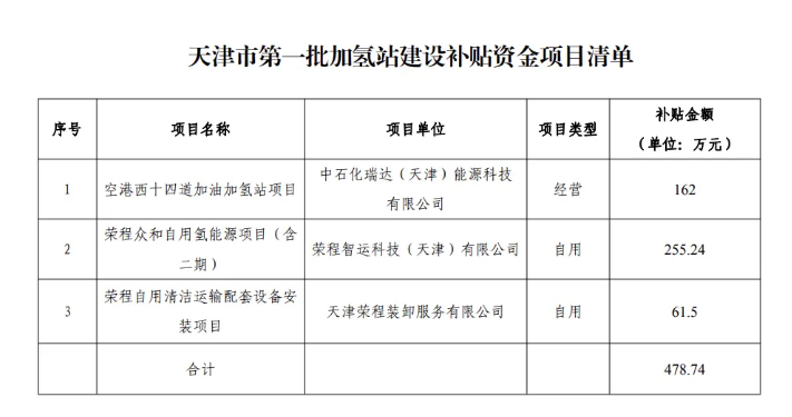 近日,天津市發展和改革委員會發布了關于天津市第一批加氫站建設補貼資金項目清單的公示。