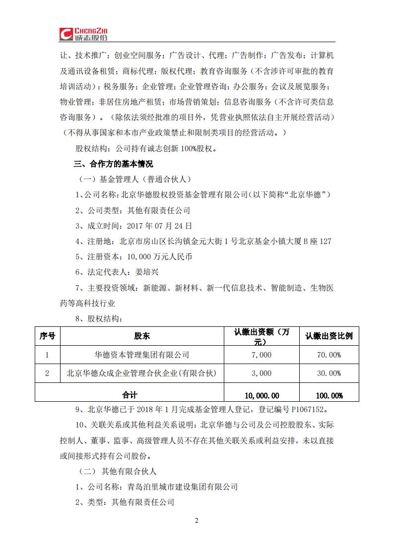 此外,青島泊里華德誠志氫動能投資基金合伙企業(yè)(有限合伙)(暫定名)合伙協(xié)議各方包括北京誠志科技創(chuàng)新發(fā)展有限公司、北京華德股權(quán)投資基金管理有限公司、青島泊里城市建設(shè)集團(tuán)有限公司。