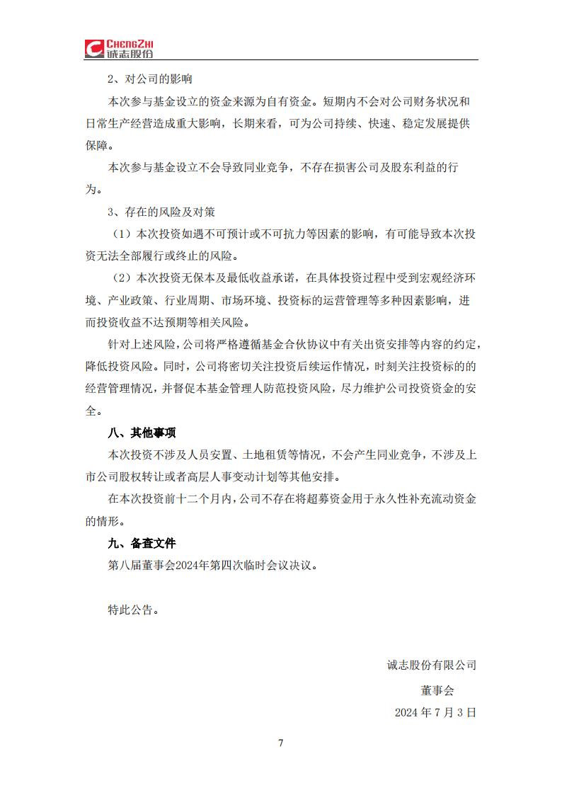 對此,誠志股份指出,本次參與基金設(shè)立的資金來源為自有資金。短期內(nèi)不會對公司財(cái)務(wù)狀況和日常生產(chǎn)經(jīng)營造成重大影響,長期來看,可為公司持續(xù)、快速、穩(wěn)定發(fā)展提供保障。