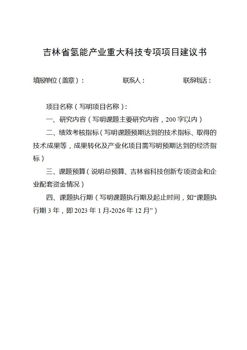 附件:吉林省氫能產(chǎn)業(yè)重大科技專項(xiàng)項(xiàng)目建議書