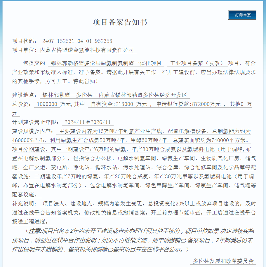 近日,錫林郭勒格盟多倫縣綠氫制氨制醇一體化項(xiàng)目獲備案。