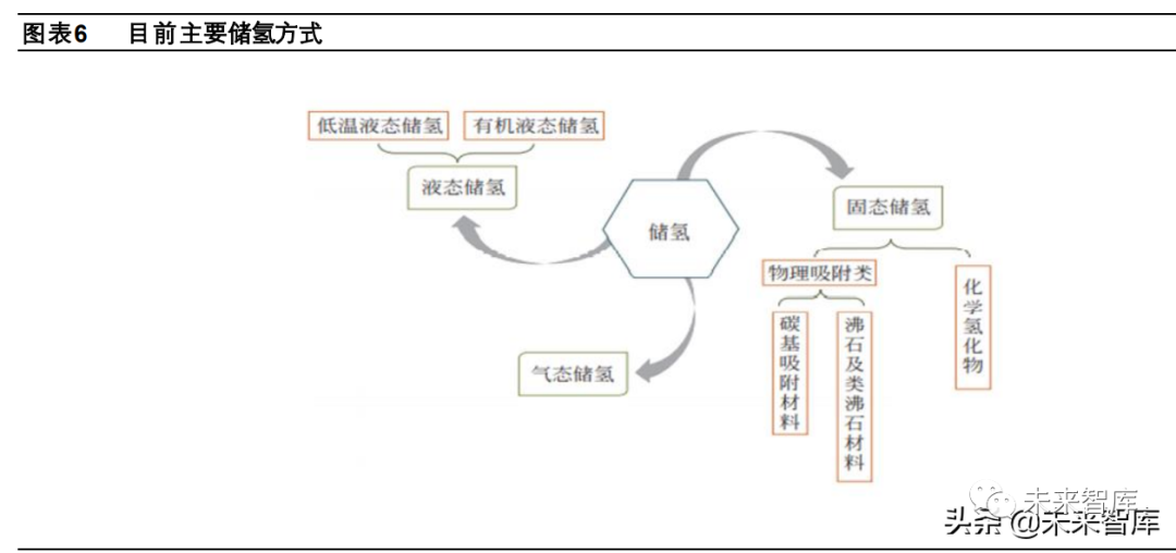 目前,主要儲氫方式有三種,分別是氣態儲氫、液態儲氫、固態儲氫。從技術發展方向來看,目前高壓氣態儲氫技術比較成 熟,一定時間內都將是國內主推的儲氫技術;有機物液體儲氫技術可以利用傳統的石油基礎設施進行運輸、加注,方便建立 像加油站那樣的加氫網絡,相比于其它技術而言,具有獨一無二的安全性和運輸便利性,但該技術尚有較多技術難題,未來 看會極具應用前景;固態儲氫應用在燃料電池汽車上優點十分明顯,但現在技術還有待突破,短期內不會有較大范圍的應用, 長期來看發展潛力比較大。