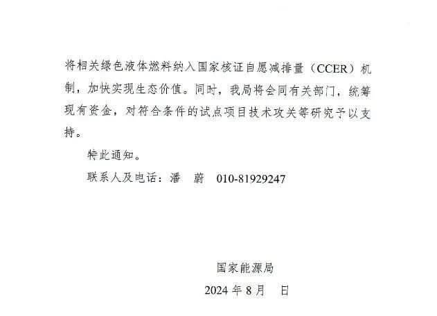 積極推動將相關綠色液體燃料納入國家核證自愿減排量(CCER)機制,加快實現生態價值。同時,國家能源局將會同有關部門,統籌現有資金,對符和條件的試點項目技術攻關等研究予以支持。