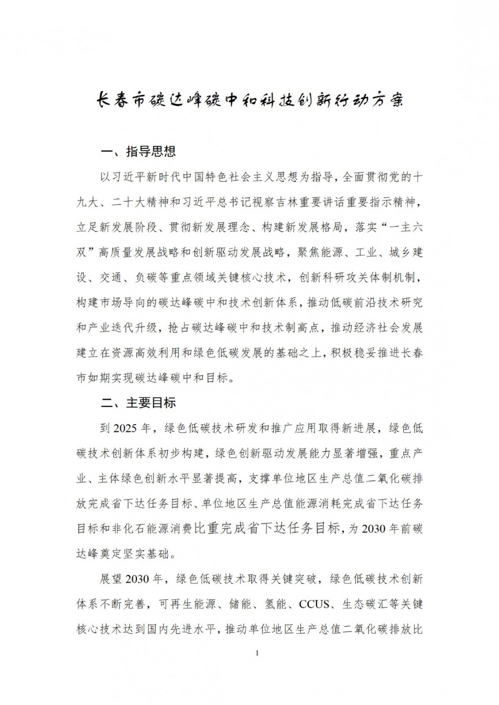 9月30日,長春市科學技術局發布關于印發《長春市碳達峰碳中和科技創新行動方案》的通知。