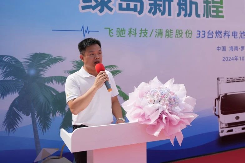 10月11日,佛山市飛馳汽車科技有限公司(以下簡稱“飛馳科技”)4.5噸燃料電池冷藏車交付海南氫干線儀式隆重舉行,33輛燃料電池冷藏車正式進入海南物流體系。隨著這批綠色、高效燃料電池冷藏車的投入使用,將進一步加快構建海南綠色低碳物流交通體系,助力海南清潔能源島建設,為海南綠色發展注入新的動力,也標志著海南燃料電池汽車示范應用項目正式啟動。在交付儀式上,飛馳科技營銷總監陸陽春發表了致辭,他表示:很榮幸飛馳科技能協同清能股份、中國石化、大河四季、氫干線、羅牛山等合作伙伴入選海南省第一批燃料電池汽車等技術示范應用項目。這不僅是對我們技術實力的認可,更是對我們創新能力的信任。我們將以此為契機,進一步深化在海南省的合作,為海南建設綠色交通體系貢獻力量,共同推動海南自由貿易港的綠色發展。在隨后舉行的交車儀式上,飛馳科技營銷總監陸陽春將象征著深度戰略合作正式啟動的鑰匙鄭重轉交給氫干線(海南)冷鏈物流有限公司企業代表。這批搭載清能股份80kW燃料電池系統的4.5噸氫能冷藏車,整體系統的試驗數據處于行業領先水平。具有零排放、控溫保鮮、低噪音等特點,極大程度上的滿足冷鏈物流全鏈條溫控需求,具備高度的安全性、可靠性、環境適應性;加注氫氣僅需幾分鐘,續航即可達400公里,全面覆蓋城市、城際,涵蓋商超、鮮肉、醫藥、水產、鮮花、預制菜等六大場景,為終端客戶創造更大的經濟價值,助力行業綠色轉型。