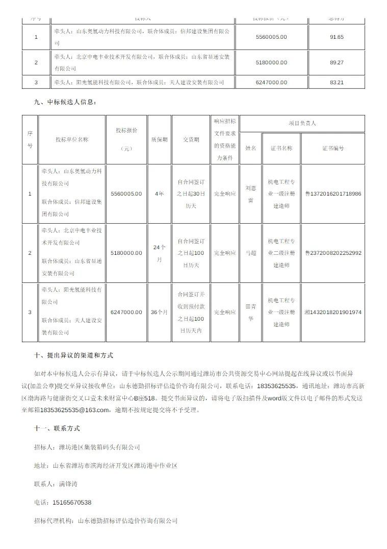 10月12日,山東港口渤海灣港濰坊港區(qū)制氫站工程建設(shè)項(xiàng)目設(shè)備及輔助設(shè)施采購(gòu)項(xiàng)目中標(biāo)候選人公示。