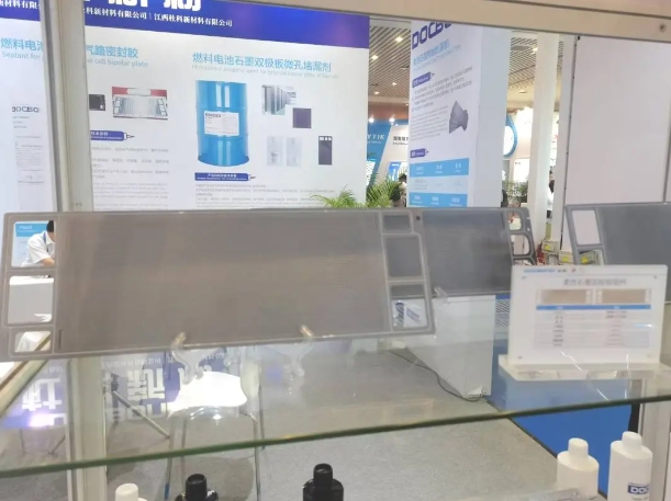 除了模壓雙極板外,杜科新材還展出了針對氫能源燃料電池雙極板粘接、密封、灌封等應用需求而研發的氫能源燃料電池整體用膠解決方案產品。該系列用膠產品均采用了行業領先的技術和材料,具有優異的耐化學性、耐溫性、耐老化性和良好的粘接強度,能夠確保燃料電池在極端工況下的穩定性和可靠性,截至目前,杜科新材在燃料電池用膠領域已經形成了先相對完整的產品矩陣,公司已經先后推出了石墨板微孔堵漏膠、石墨雙極板水場粘接膠、MEA邊框及碳紙粘接膠、GDL粘接邊框膠、增濕器灌封膠、金屬板底涂粘接密封墊等多款產品。