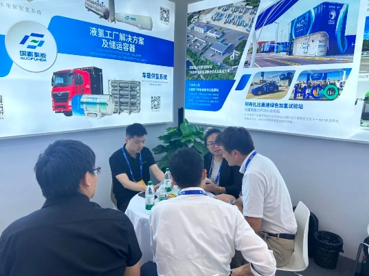 現(xiàn)場展示展會(huì)上,國富氫能攜帶了綠氫液化制儲(chǔ)運(yùn)加用產(chǎn)業(yè)沙盤模型及“漫步-1200”車載液氫供氫系統(tǒng),完整展現(xiàn)了公司綠氫裝備領(lǐng)域的一站式綜合解決方案。展位前人流如織,公司獨(dú)特的業(yè)務(wù)亮點(diǎn)、卓越的銷售業(yè)績以及一系列具有代表性的成功案例,配合精致的沙盤模型,吸引了眾多參會(huì)者的目光與咨詢熱情。國富氫能的專業(yè)營銷團(tuán)隊(duì)以飽滿的熱情,對(duì)每一位到訪客戶進(jìn)行了細(xì)致入微的講解與專業(yè)接待,不僅提供了詳盡的產(chǎn)品特性介紹和技術(shù)深度剖析,還積極傾聽客戶需求,力求為每一位客戶量身定制最為貼合其需求的解決方案,共謀氫能未來的綠色發(fā)展之路。