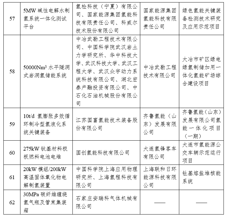 根據《第四批能源領域首臺(套)重大技術裝備名單》,其中6項氫能技術裝備入選。這6套分別為一套5MW堿性電解水制氫系統測試平臺、一套巖洞氫儲能系統、一套10t/d氫膨脹氫液化系統關鍵裝備、一套275kW鈦基材料極板燃料電池電堆、20kW模組/200kW高溫固體氧化物電解制氫裝置、以及一套30MPa碳纖維纏繞氫氣瓶及管束集裝箱。