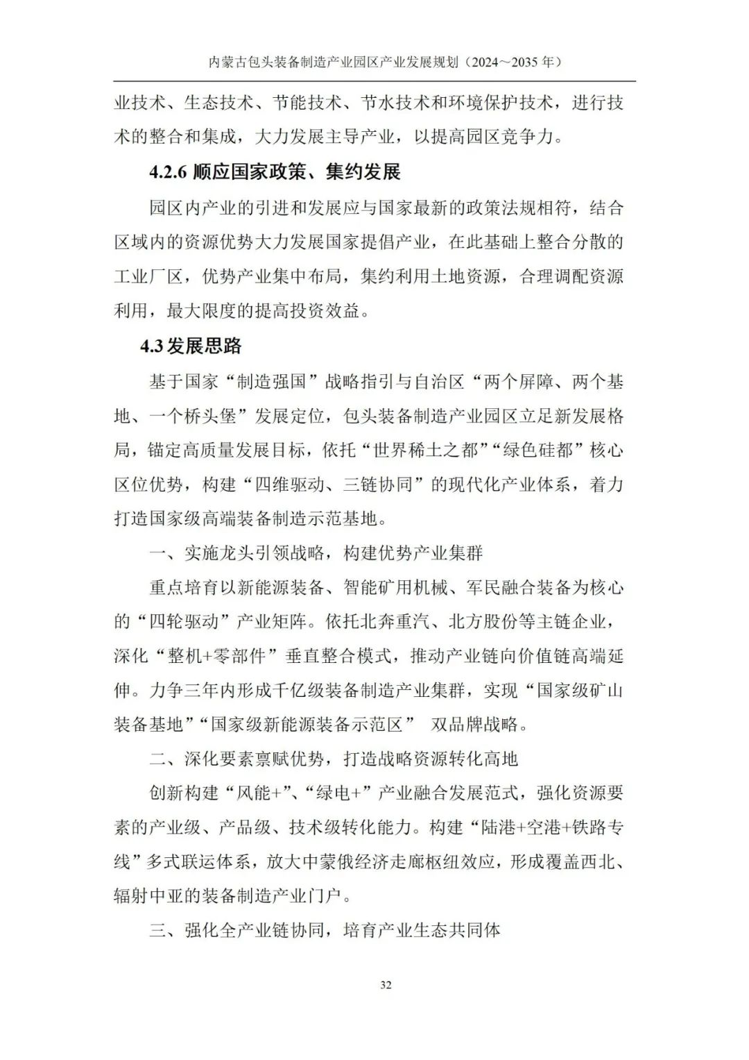 為進(jìn)一步適應(yīng)產(chǎn)業(yè)發(fā)展新趨勢,推動(dòng)創(chuàng)新發(fā)展,提升園區(qū)整體競爭力,2024年底,園區(qū)通過前期調(diào)研、多方征求意見及多次會(huì)議研討,結(jié)合當(dāng)前實(shí)際情況,修編了《包頭裝備制造產(chǎn)業(yè)園區(qū)產(chǎn)業(yè)發(fā)展規(guī)劃(2024~2035年)》,拓展了傳統(tǒng)裝備制造產(chǎn)業(yè)的發(fā)展思路,新增了新一代技術(shù)等新興產(chǎn)業(yè),現(xiàn)形成《規(guī)劃》征求意見稿,向社會(huì)征求意見,歡迎社會(huì)各界提出意見建議。