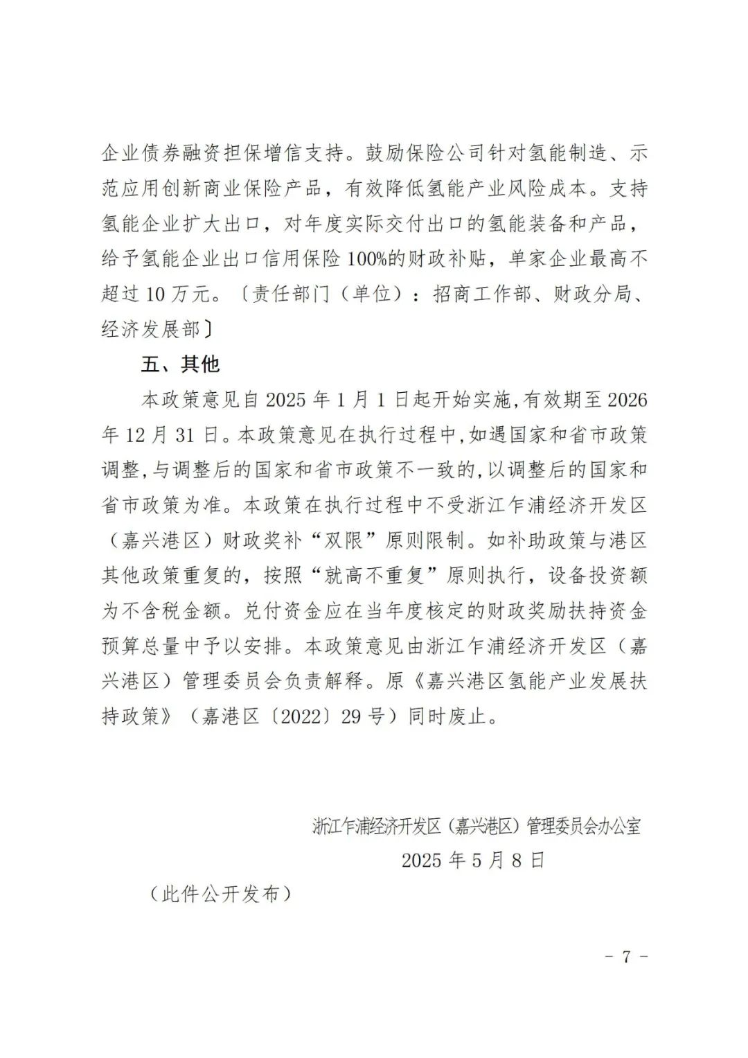 支持氫能企業擴大出口,對年度實際交付出口的氫能裝備和產品,給予氫能企業出口信用保險100%的財政補貼,單家企業最高不超過10萬元。