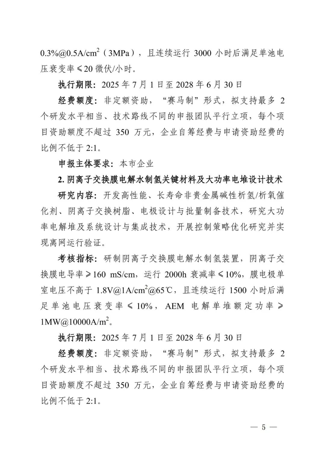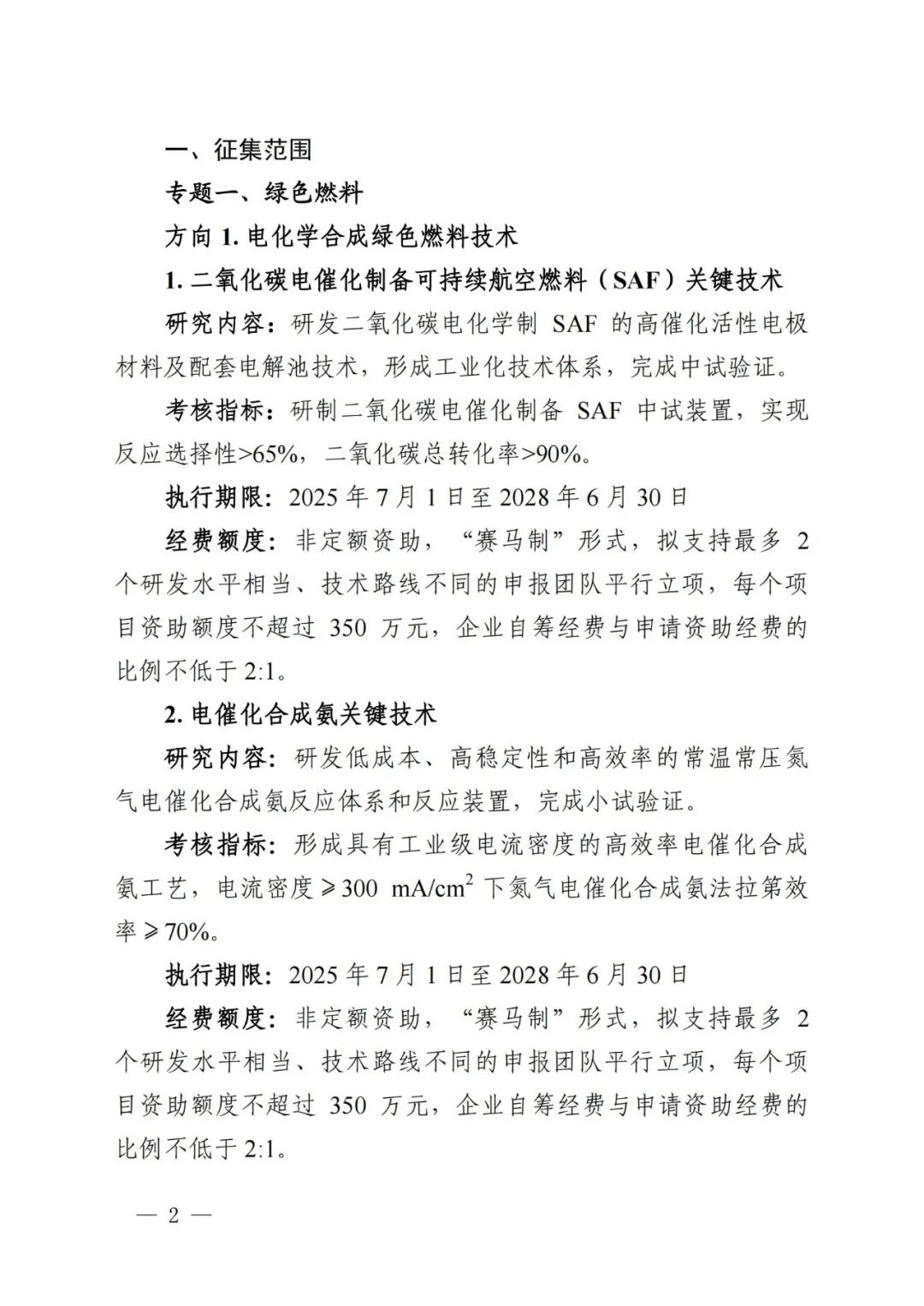 其中,二氧化碳電催化制備可持續航空燃料(SAF)關鍵技術、電催化合成氨關鍵技術、質子交換膜電解水制氫高性能膜電極開發及批量化制造技術、陰離子交換膜電解水制氫關鍵材料及大功率電堆設計技術、高功率高能量密度燃料電池小堆系統技術及應用,每個項目資助額度不超過350萬元。
