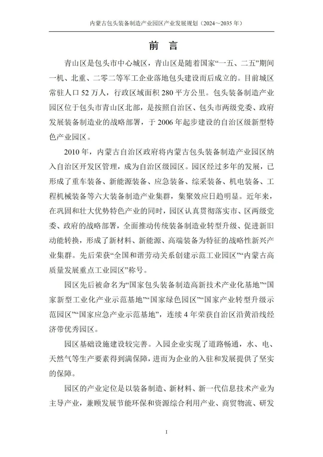 近日,青山區(qū)人民政府發(fā)布關(guān)于《包頭裝備制造產(chǎn)業(yè)園區(qū)產(chǎn)業(yè)發(fā)展規(guī)劃(2024~2035年)》公開征求意見的公告。