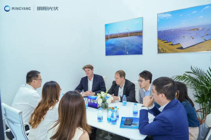 展會現場,明陽光伏展臺展示產品涵蓋新一代N型晶硅太陽能電池、鈣鈦礦薄膜技術及光電玻璃以及儲能、氫能等板塊,其中多款產品前人頭攢動,參觀者紛紛駐足,圍繞其轉換效率、極致可靠性與度電成本等核心優勢,與技術專家展開熱烈探討。這波關注熱潮的背后,不僅是明陽產品實力的有力印證,更折射出市場對光伏技術創新價值與綠色能源降本增效路徑的全新聚焦與深度認同。