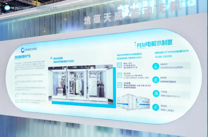 在能源結構加速轉型的關鍵時期,單一的能源解決方案已難以滿足企業多元化、復雜化的用能需求。“風光儲氫一體化”模式,通過深度融合風能產業、光伏發電、儲能系統與氫能技術,構建起靈活高效、清潔低碳的綜合能源體系,正成為企業實現綠色發展與能源安全的最佳路徑。展會現場,明陽光伏新增“雙轉子漂浮式海上風電平臺”,“氫能產業”及“儲能產業”等明陽產品的展示區域,通過場景化的產品矩陣組合,為企業提供量身定制的能源解決方案。