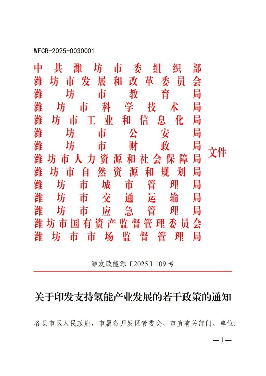 近日,濰坊市財政局發(fā)布《關(guān)于印發(fā)支持氫能產(chǎn)業(yè)發(fā)展的若干政策的通知》。