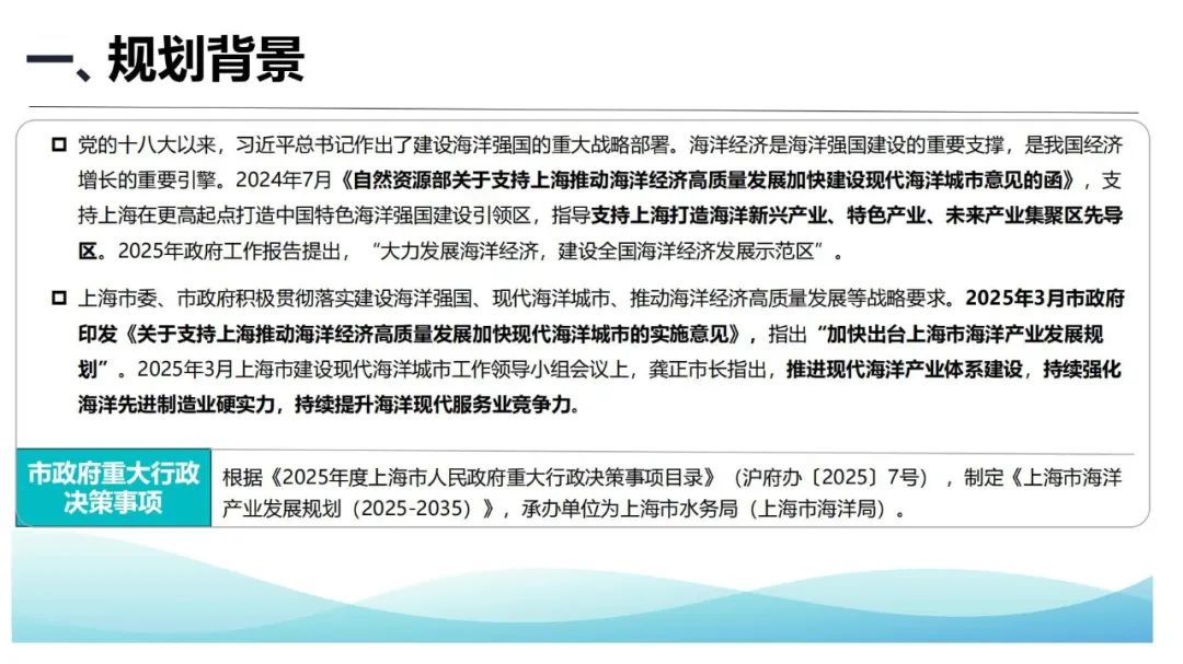 6月24日,上海市海洋局發布關于公開征求《上海市海洋產業發展規劃(2025-2035)(征求意見稿)》 意見的公告。