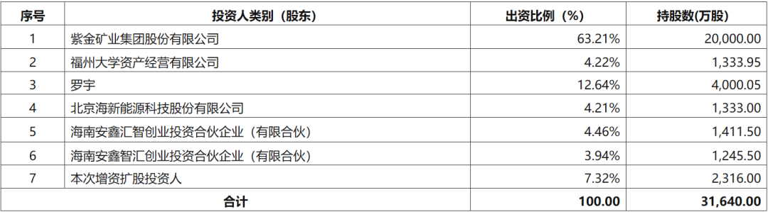 3.閩西興杭國有資產投資經營有限公司于2025年5月26日批復同意紫金礦業集團有限公司下屬的福大紫金氫能科技股份有限公司增資擴股方案。