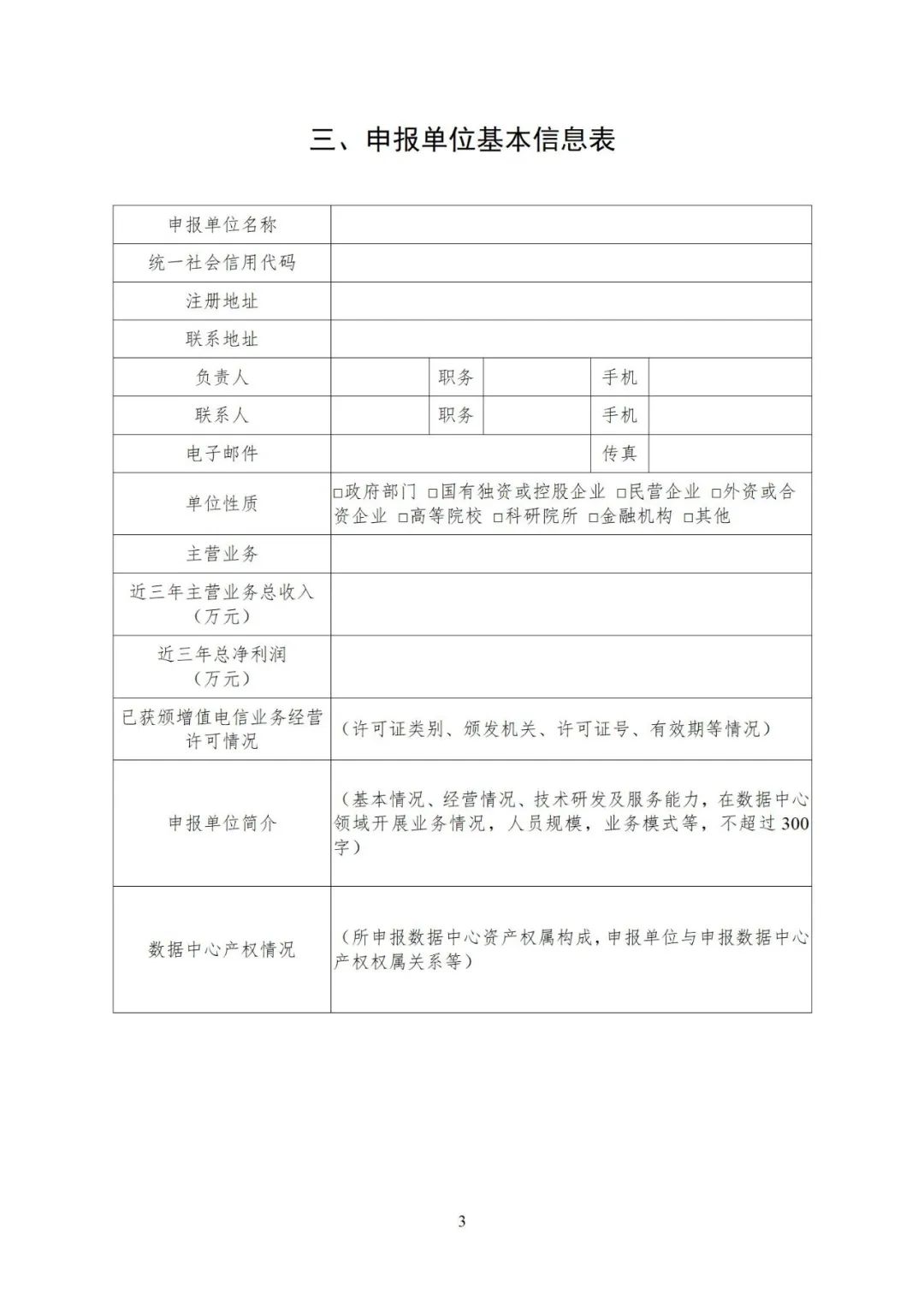 (三)金融機構、公共機構所屬數據中心分別由國家金融監督管理總局、國家機關事務管理局另行通知,并由其擇優推薦至工業和信息化部。