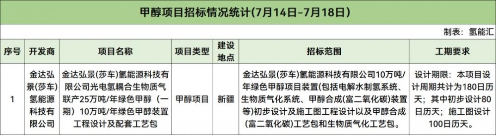 1個(gè)甲醇項(xiàng)目招標(biāo)