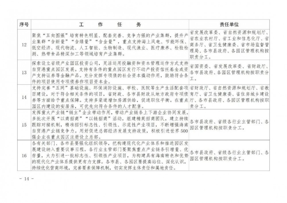 (十三)創新園區投融資機制。探索設立省級產業園區投資公司,靈活運用投融資和資本管理運作方式支持自貿港重點園區發展。支持有條件的重點園區發行不動產投資信托基金或資產支持證券等金融產品。充分發揮專項債的社會資本撬動作用,鼓勵符合條件的項目使用專項債券作項目資本金。