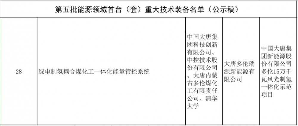 2025年8月19日,國家能源局公示第五批能源領域首臺(套)重大技術裝備名單。其中,錫林郭勒盟大唐多倫15萬千瓦風光制氫一體化示范項目中的綠電制氫耦合煤化工一體化能量管控系統成功入選。