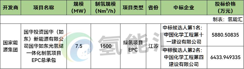 8月27日,國華投資國華(如東)新能源有限公司國華如東光氫儲一體化制氫項目EPC總承包公開招標中標候選人公示。