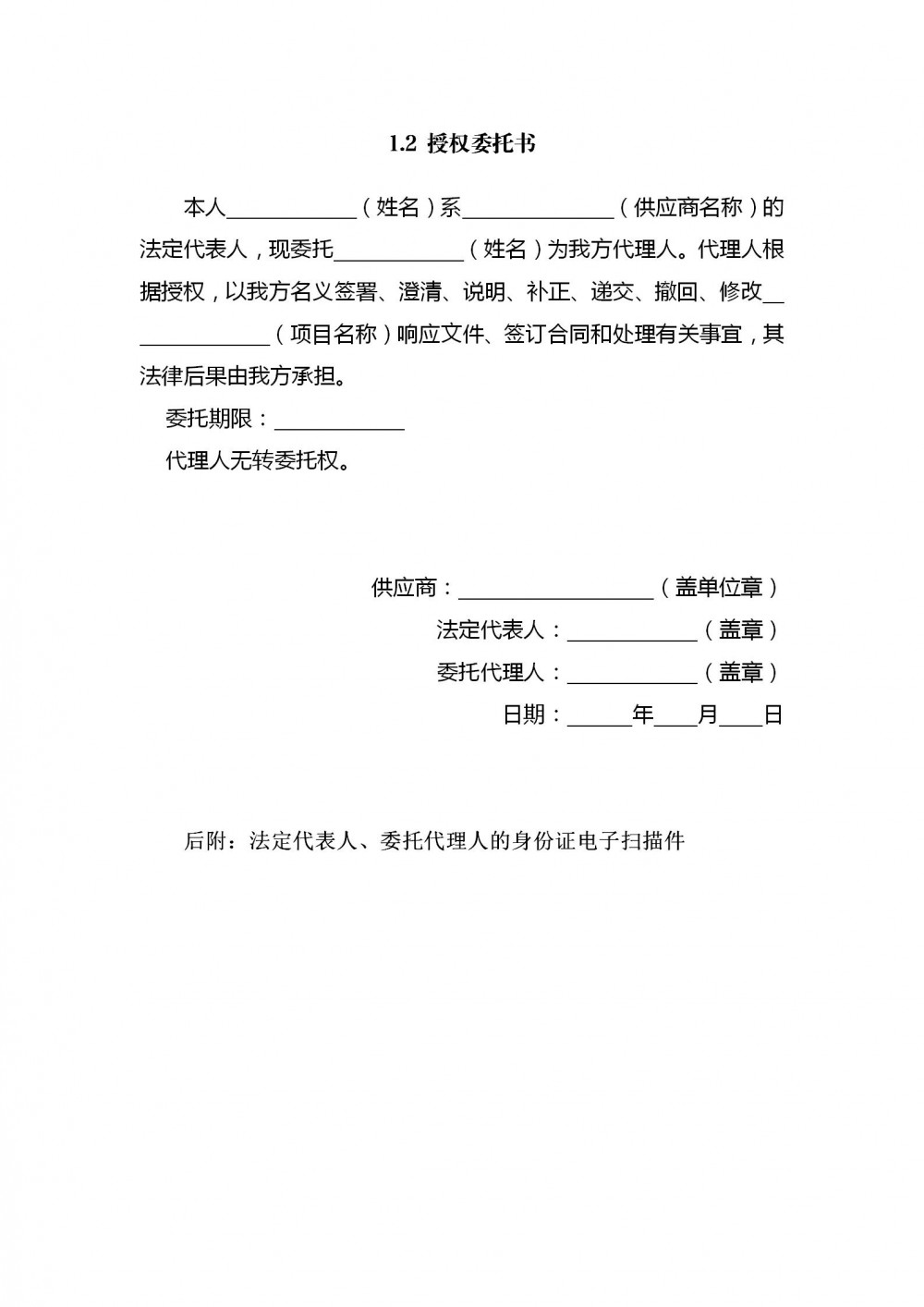 附件1:響應文件格式