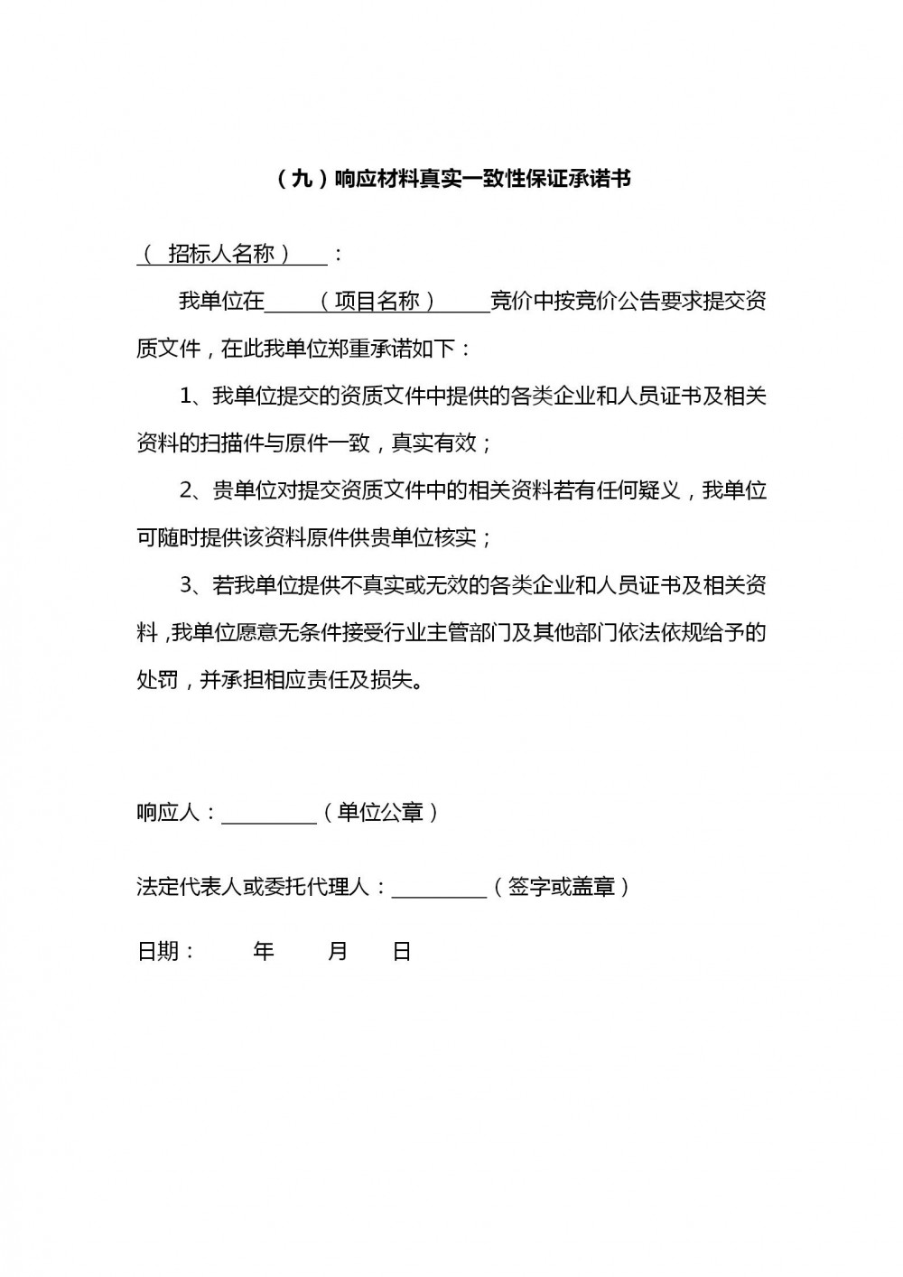 5.2供應商須按照附件格式要求提供響應材料真實一致性保證承諾書。